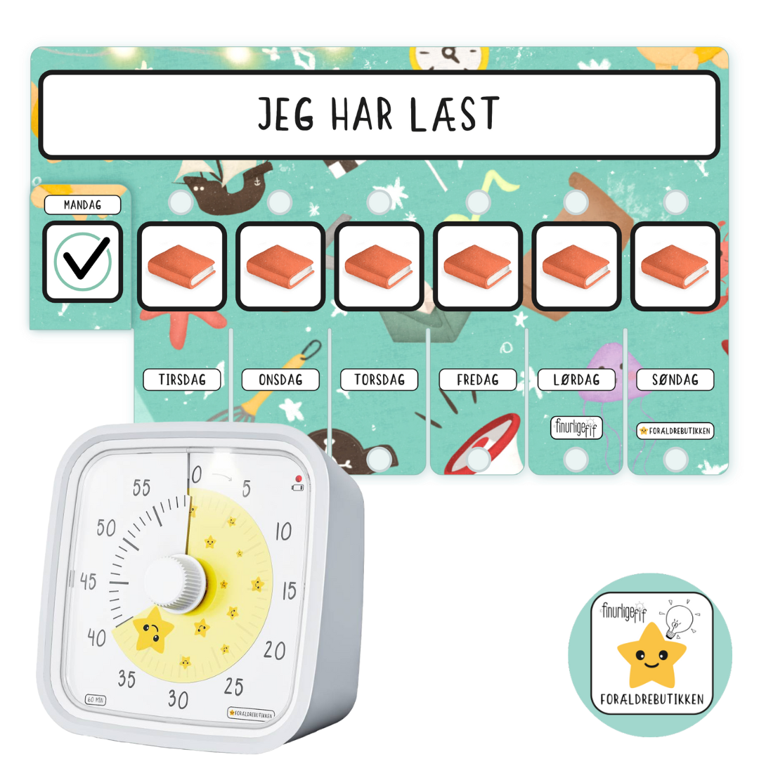 • Visuel Timer fra Forældrebutikken – en visuel timer, der hjælper med at rammesætte og strukturere læsetiden, så barnet trygt kan følge med i tiden (værdi: 350 kr).