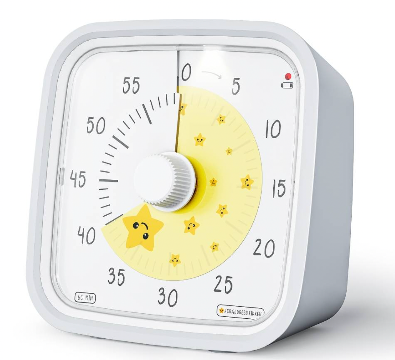 • Forbedre overgangene: Fra leg til måltider, lektier eller sengetid bliver overgange nemmere, når børnene kan se, hvor lang tid de har tilbage.