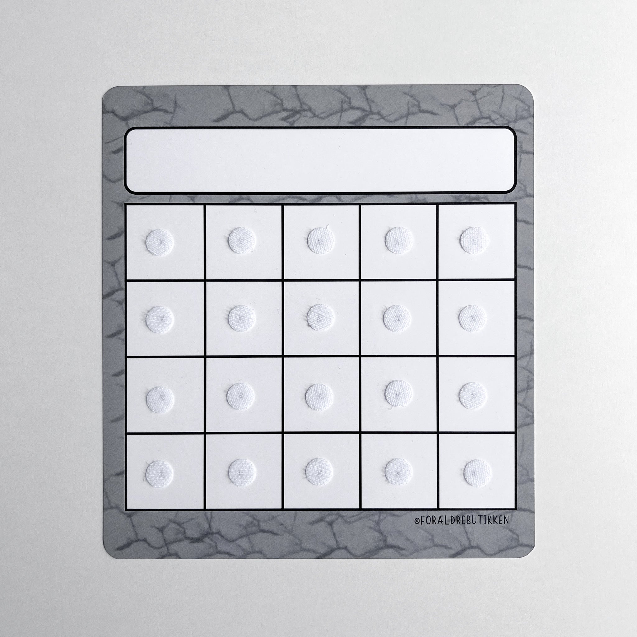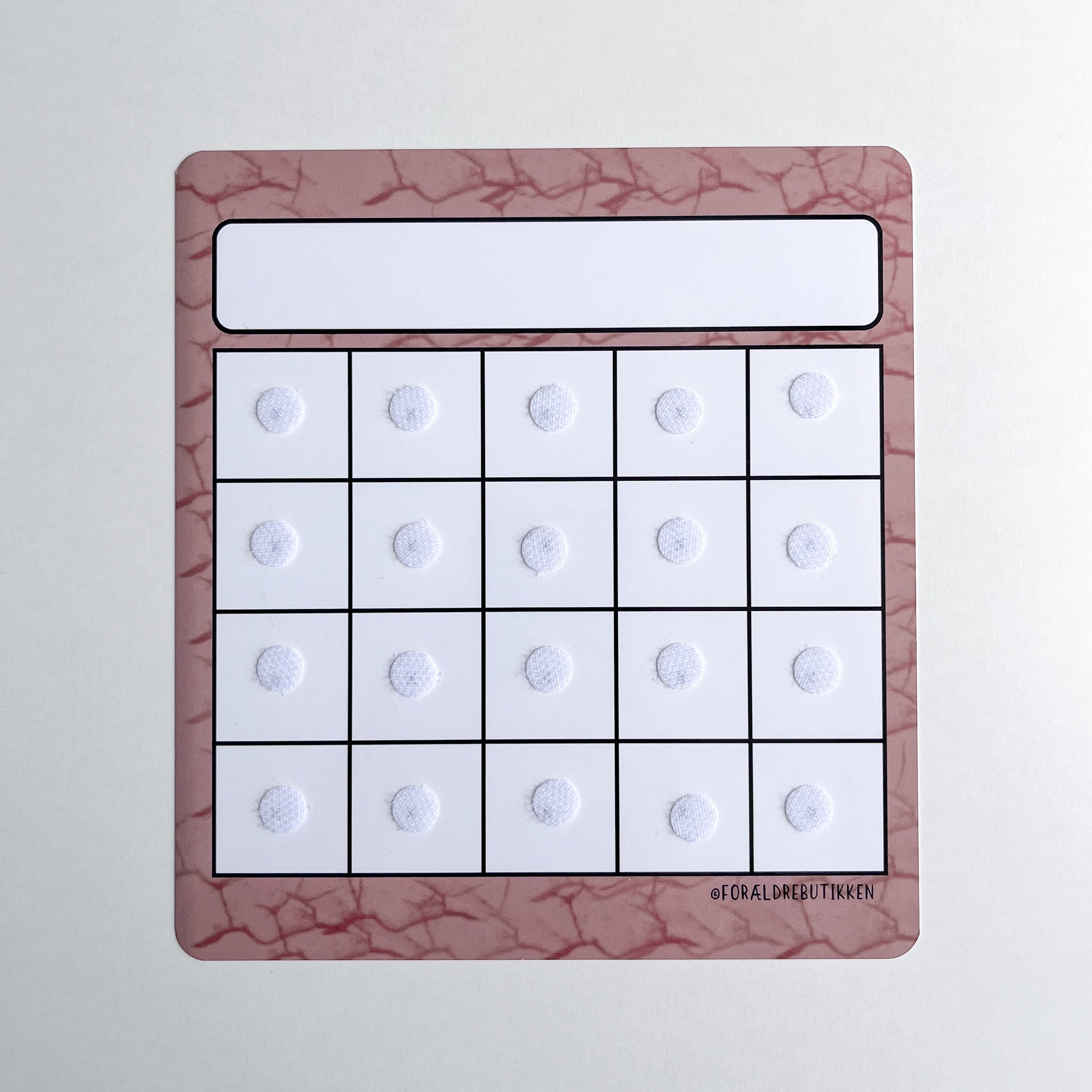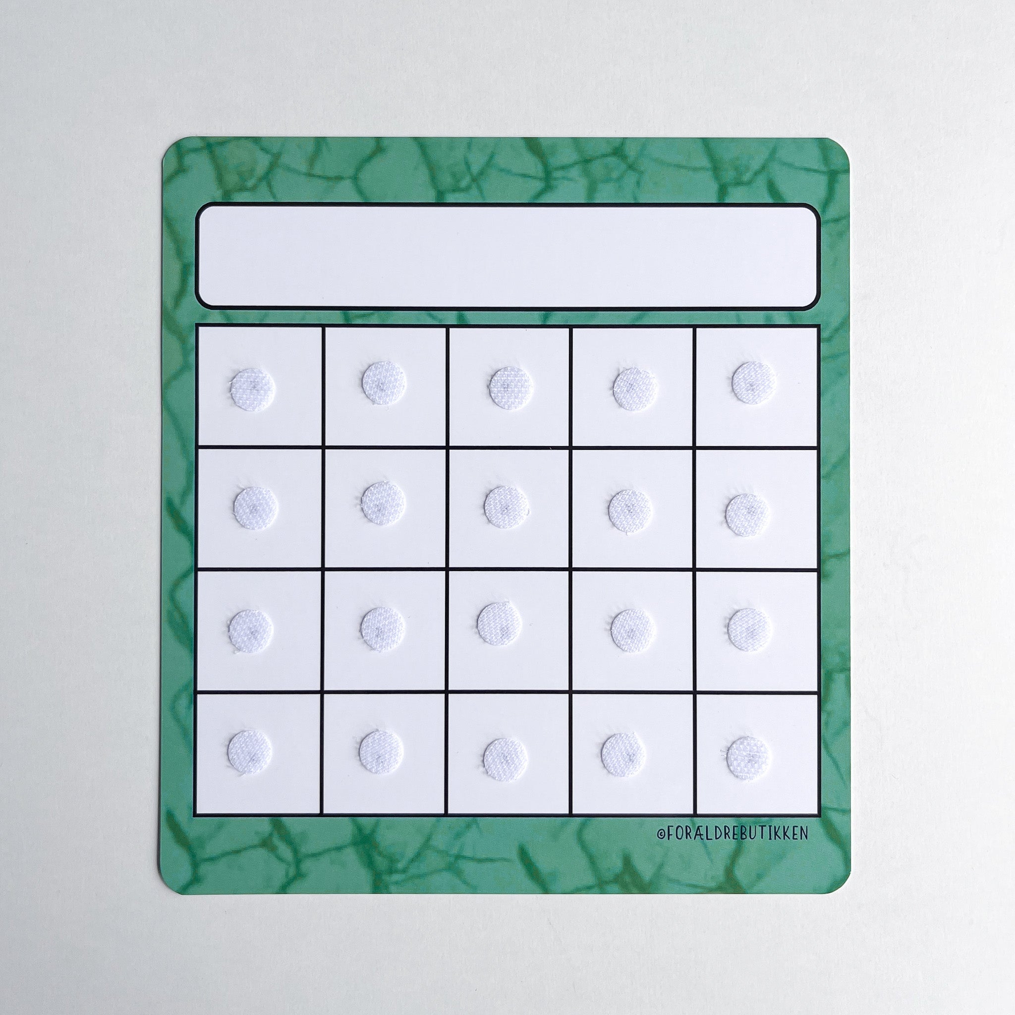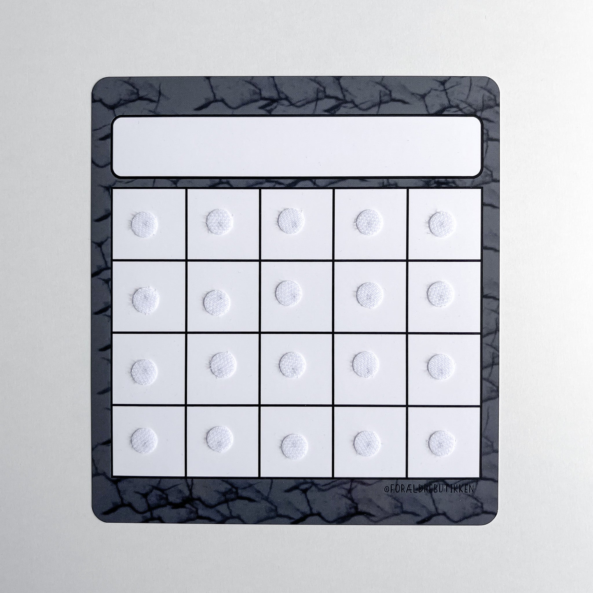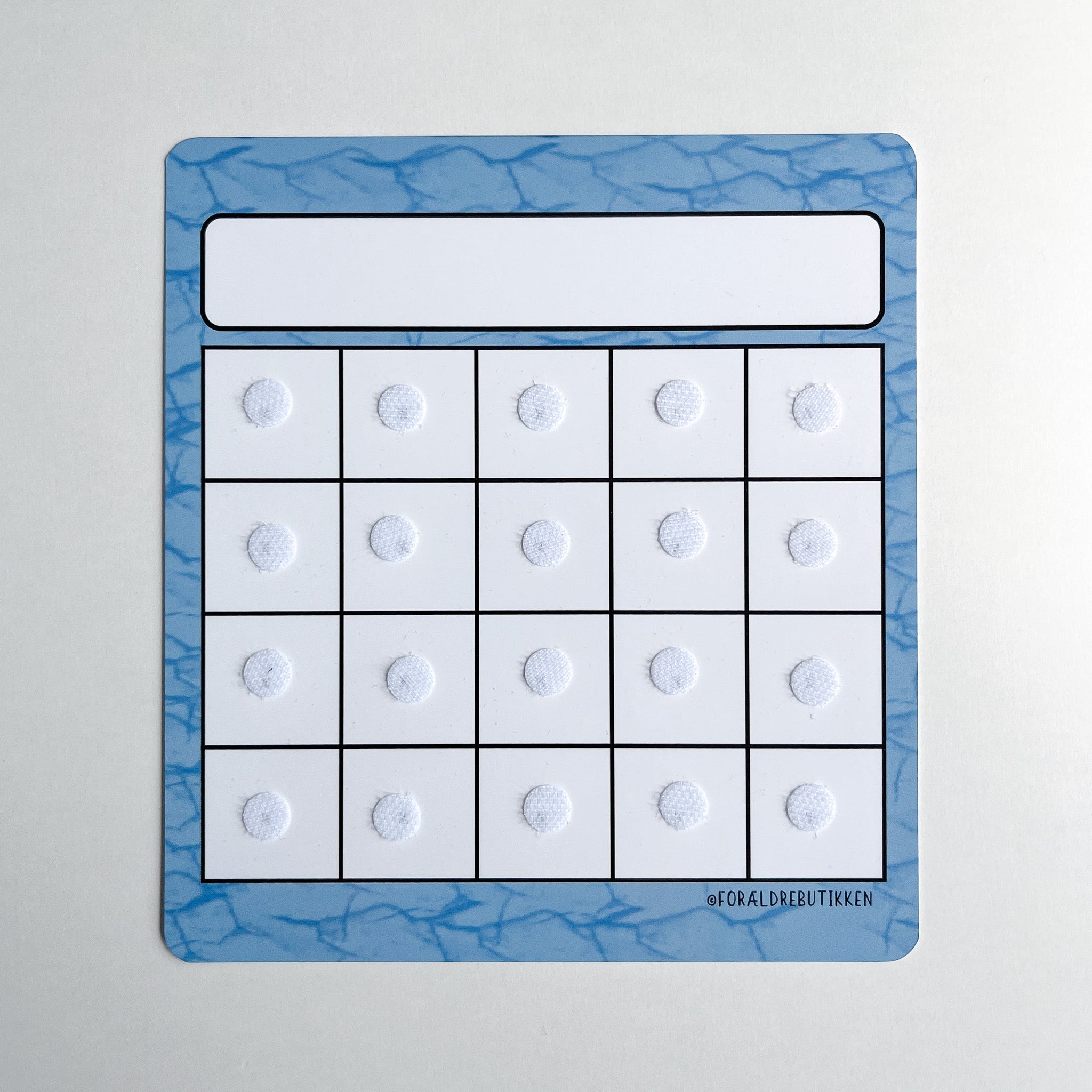 Her får du en tom tavle med velcro hvor du selv kan mikse dine piktogrammer, I kan vælger mellem vores løse piktogram brikker, eller laver jeres egne. Der er plads til 20 brikker. Overskiften er tom sådan et I selv kan skrive og viske ud.