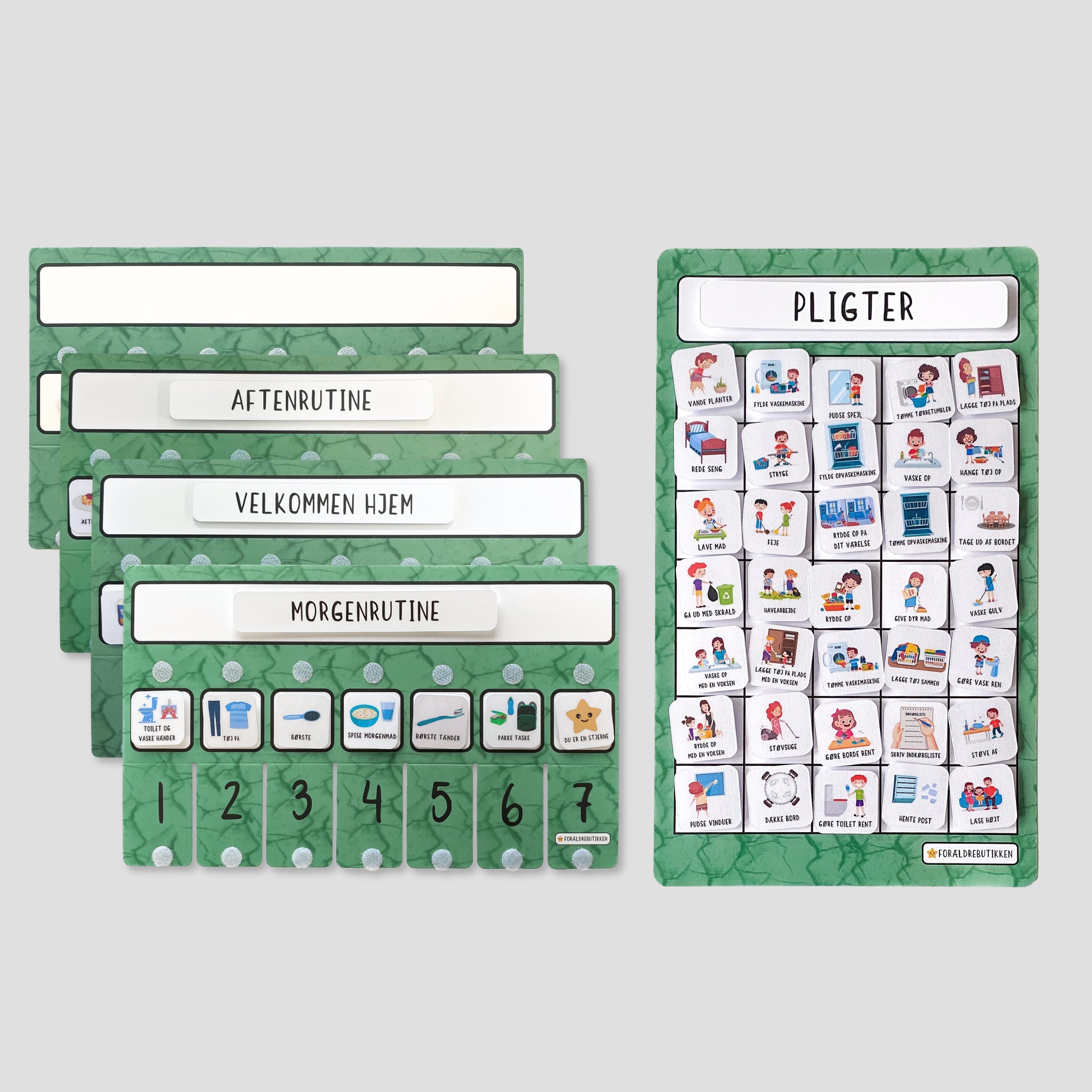 Med 'Den lille struktur bundle' får din familie de perfekte værktøjer til at indføre en velorganiseret daglig struktur, samtidig med at børnene lærer at tage ansvar for deres egne pligter.