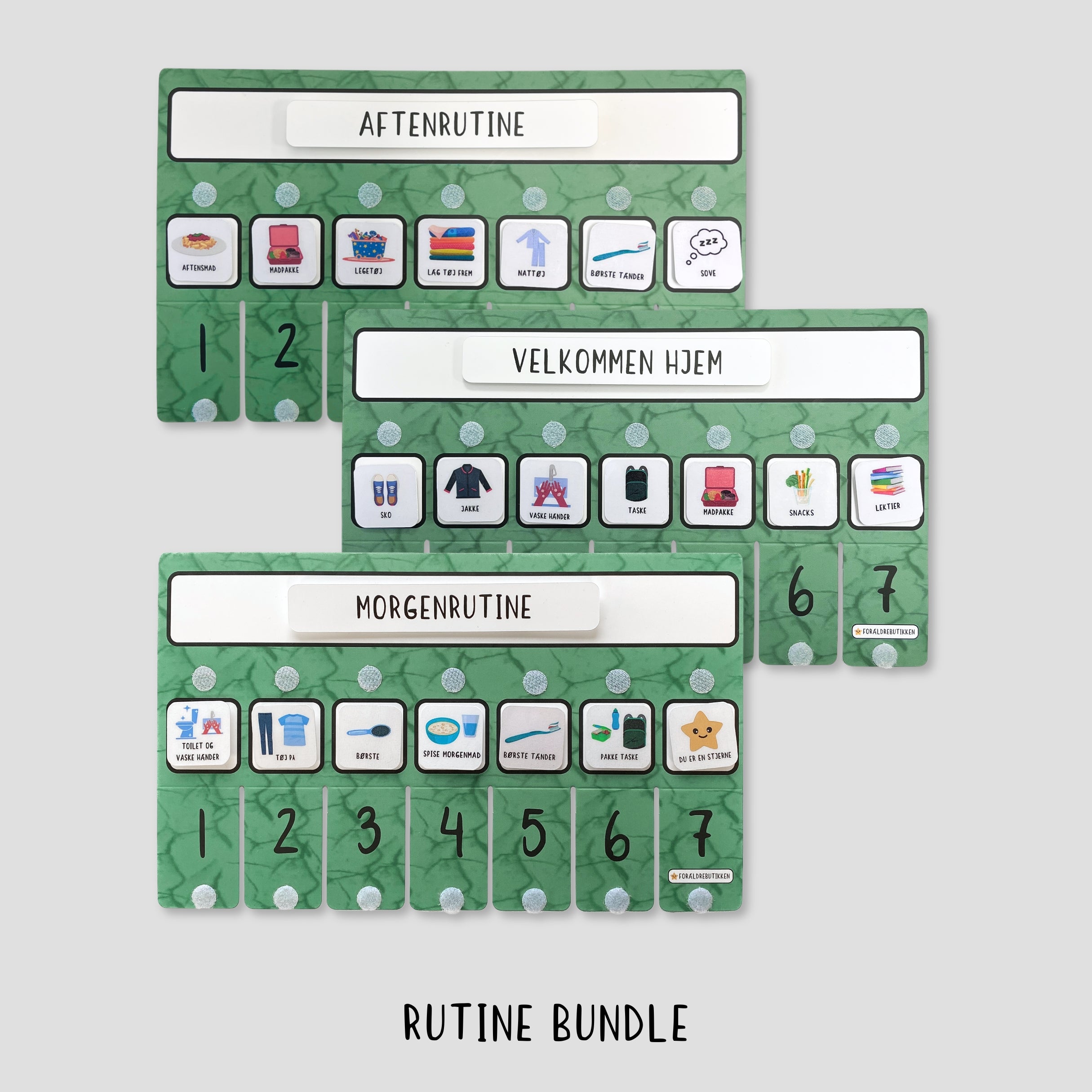 • Rutine bundle (værdi 400 kr) – 3 tjeklister med 21 hverdagspiktogrammer fordelt på morgen, velkommen hjem og aftenrutine.