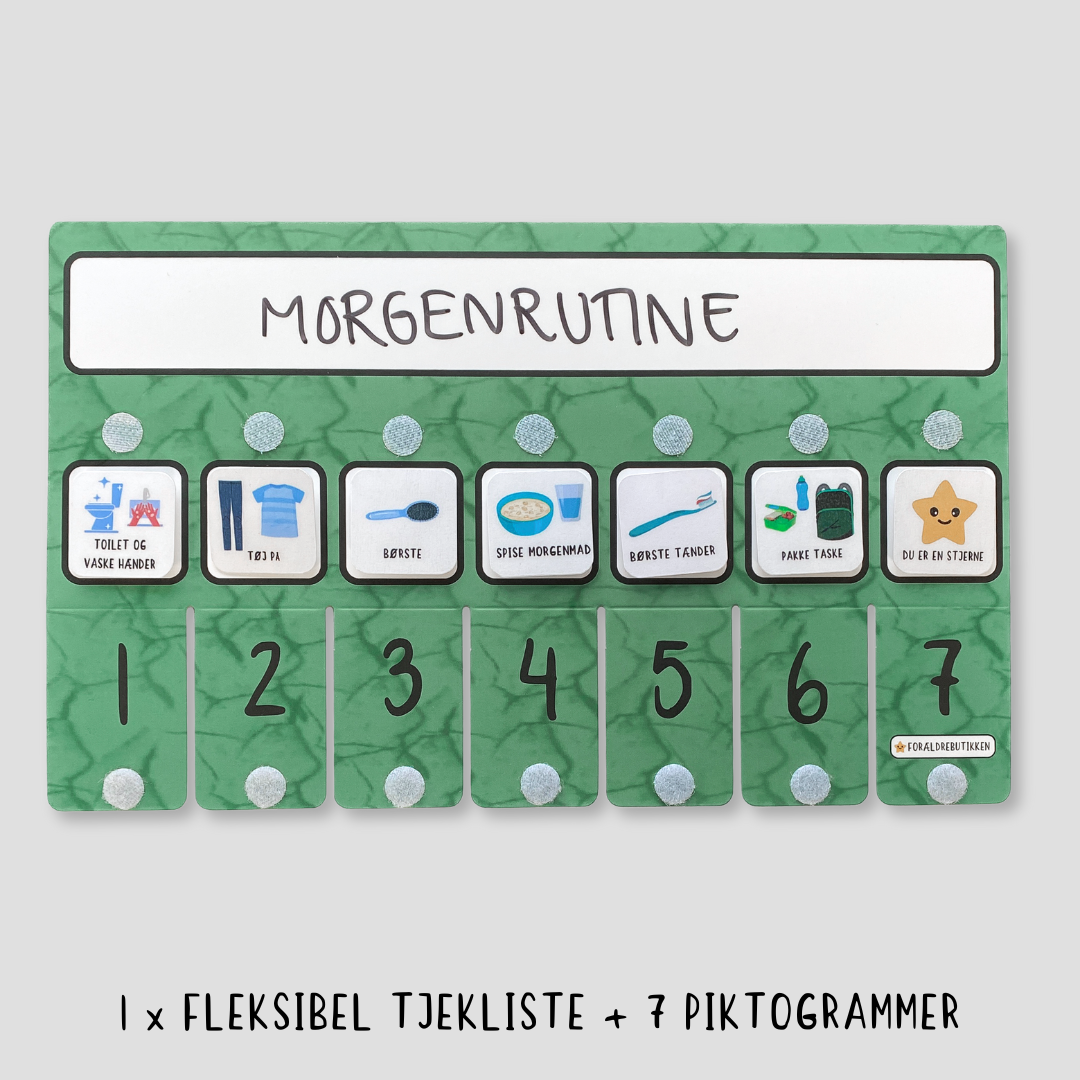 • Morgenrutine-tjekliste (værdi 180 kr) – Gør det enkelt for dit barn at følge og huske morgenens opgaver.