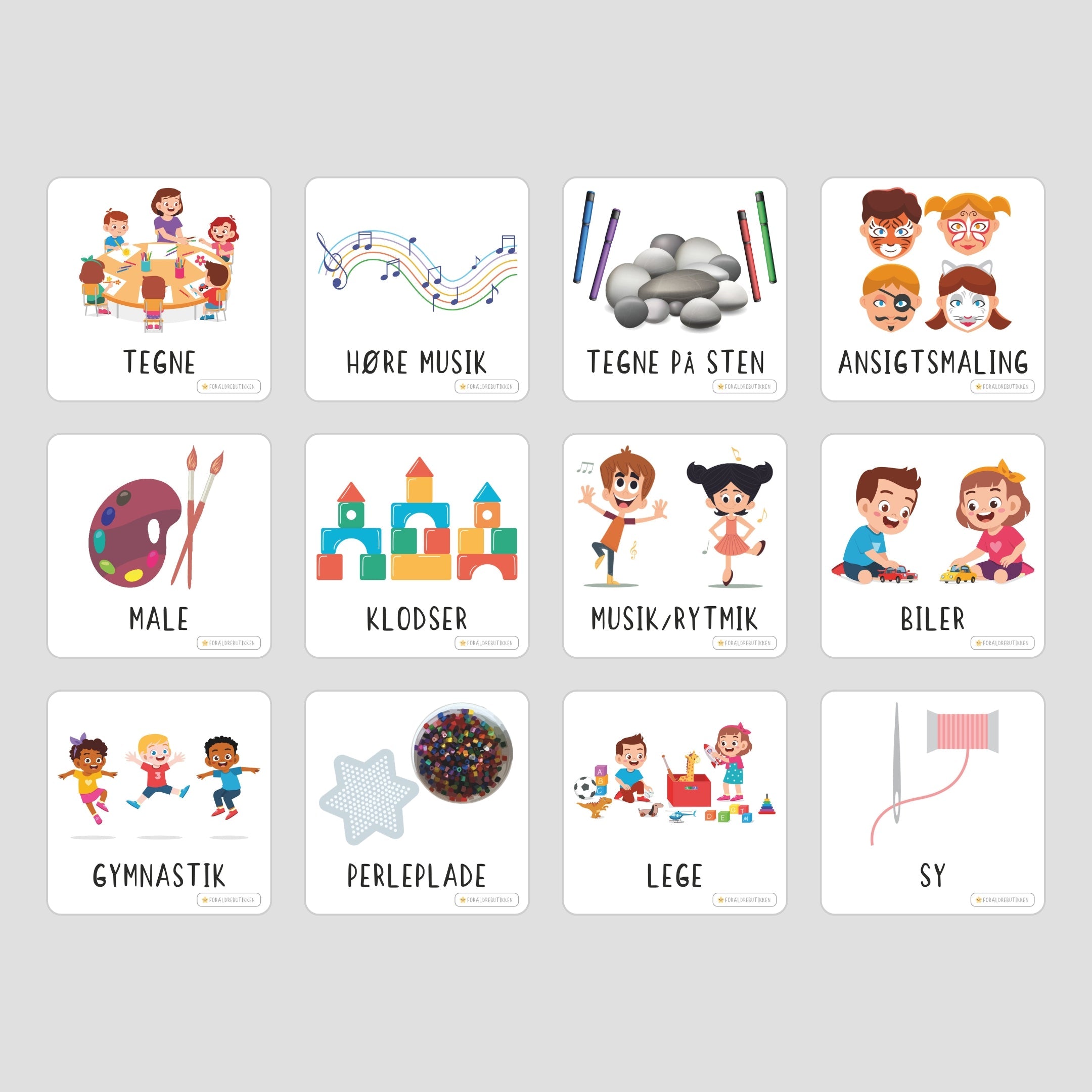 Denne piktogrampakke med 78 forskellige piktogrambrikker er rettet mod institutioner. I denne pakke får I lidt af det hele, fra forskellige inde- og udendørsaktiviteter til vejret, opgaver og hverdagen i institution.