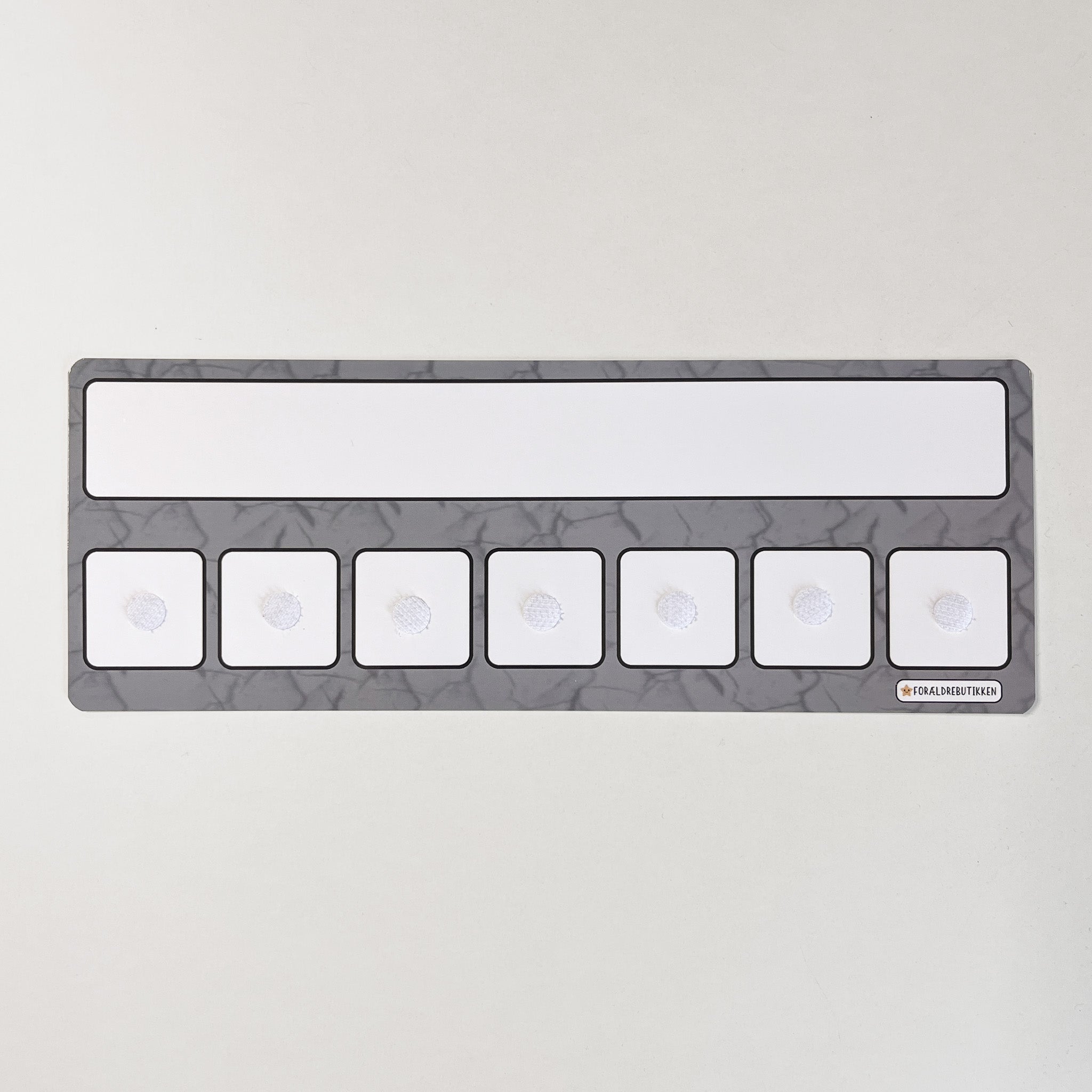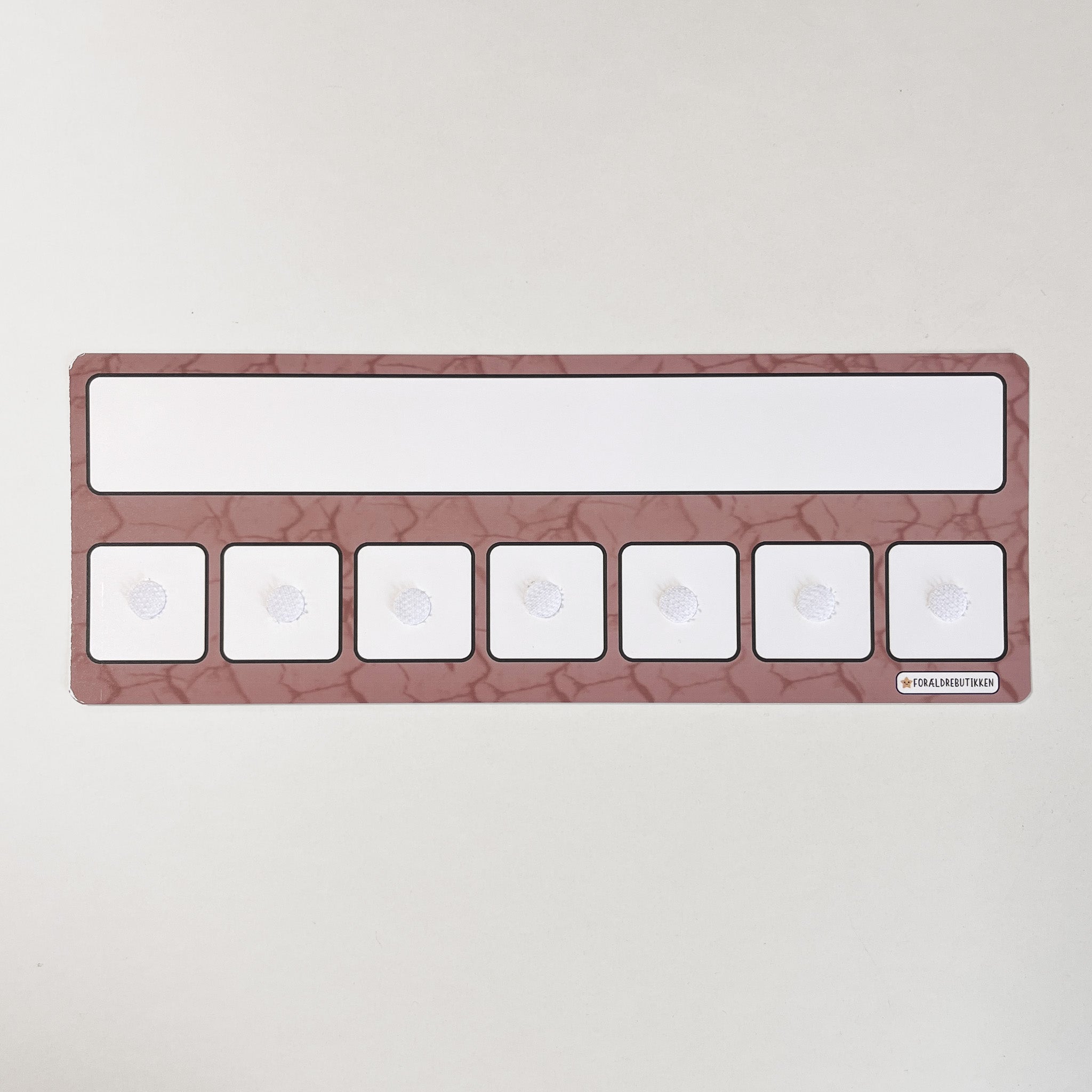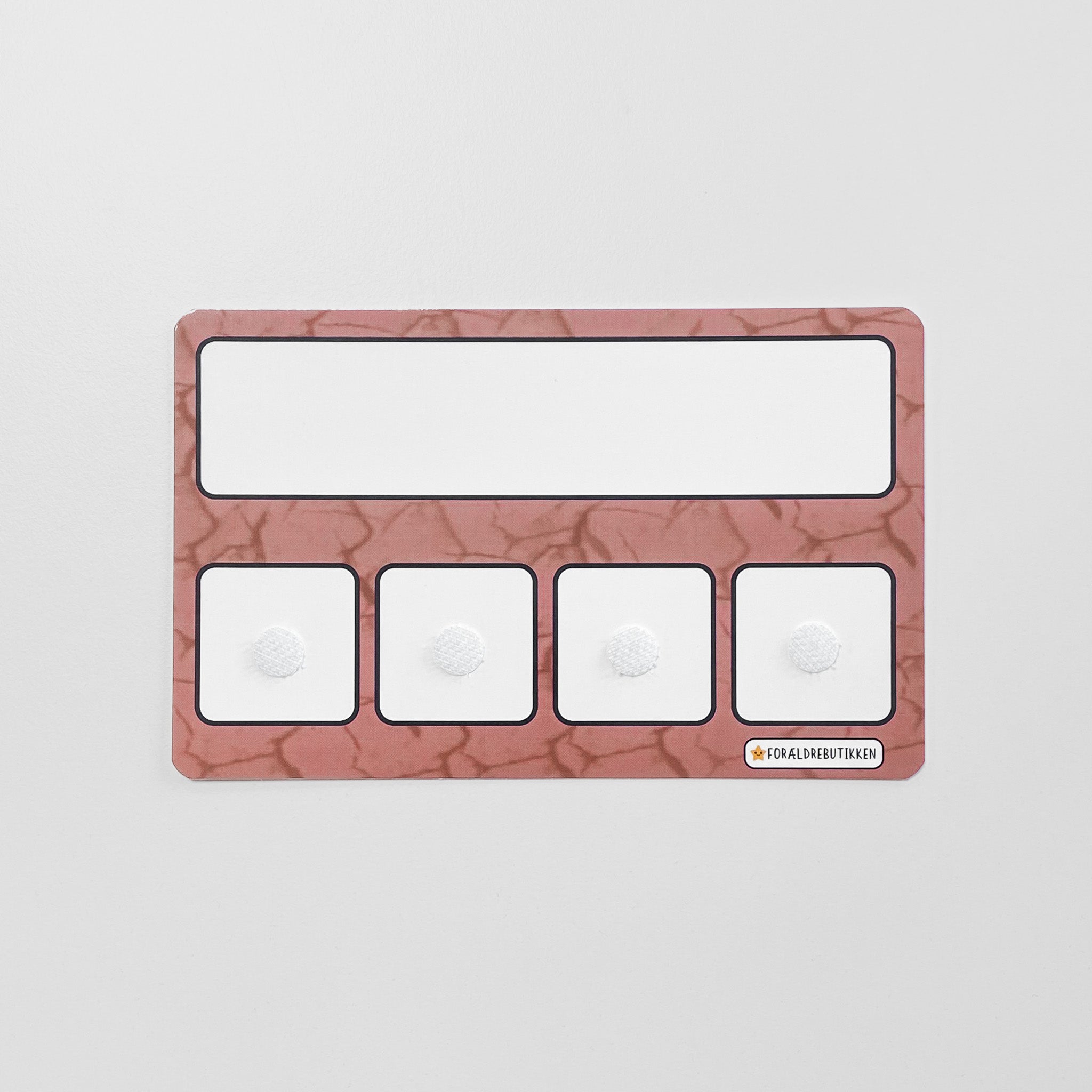 Skemaet har et tomt overskrift felt hvor du selv skal skrive og viske ud igen. Skemaet har velcro felterne som passer til vores løse piktogram brikker.