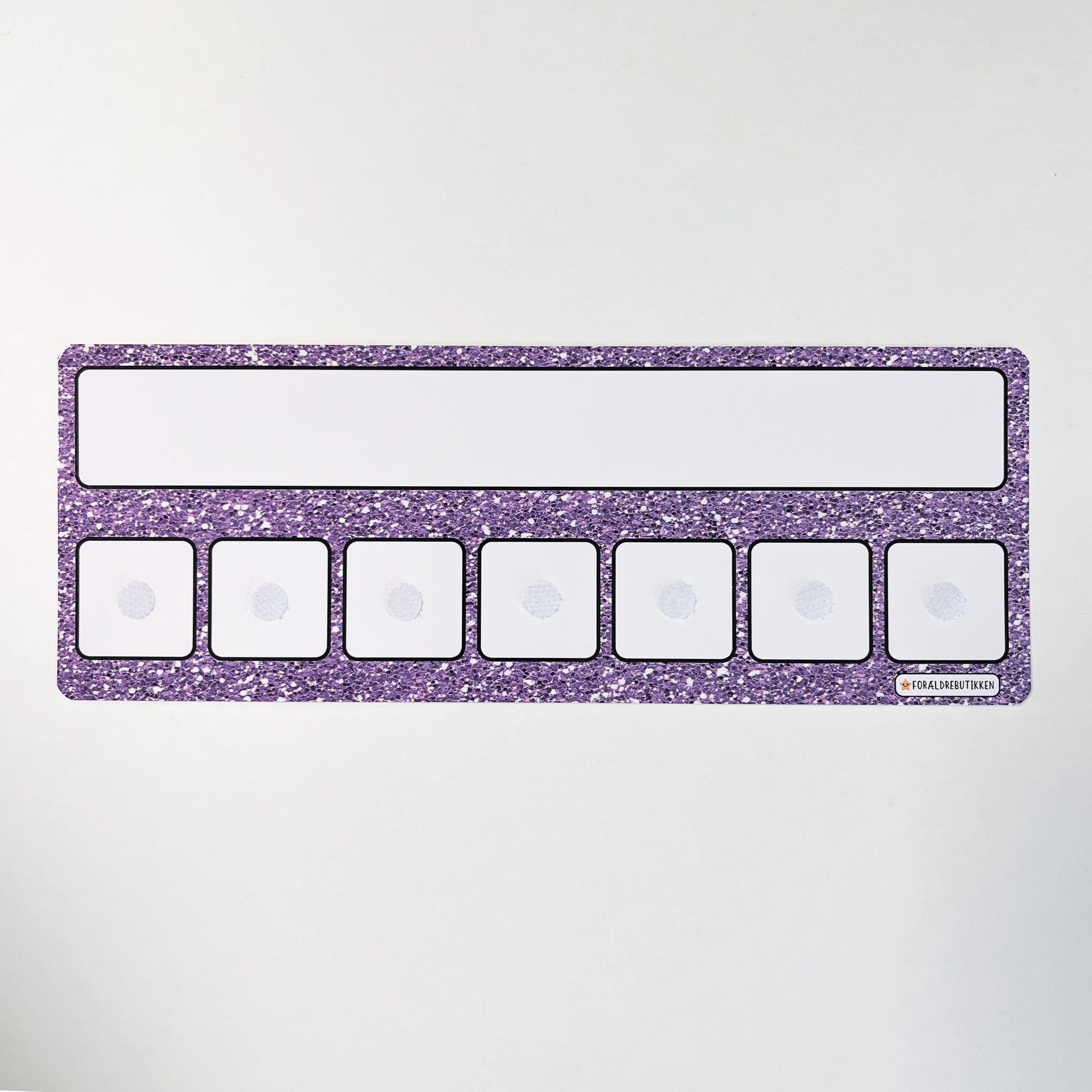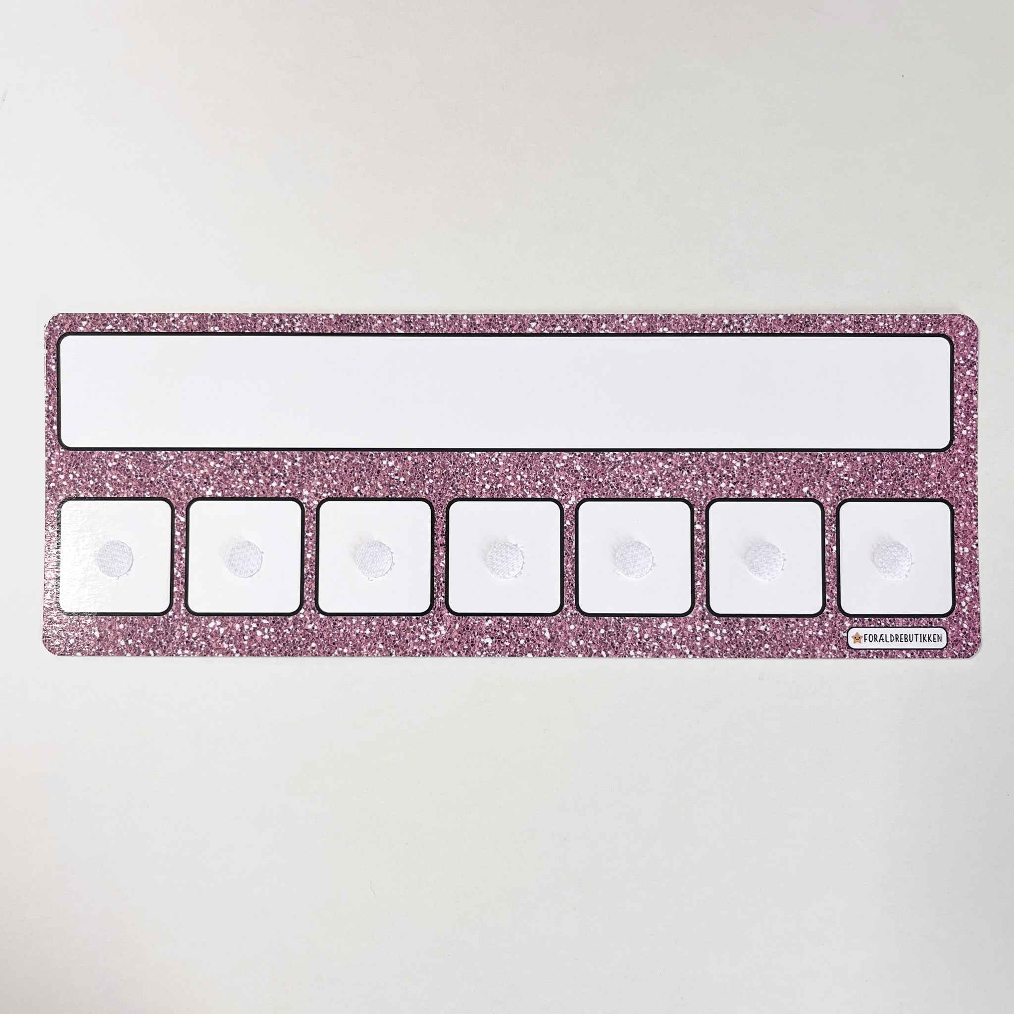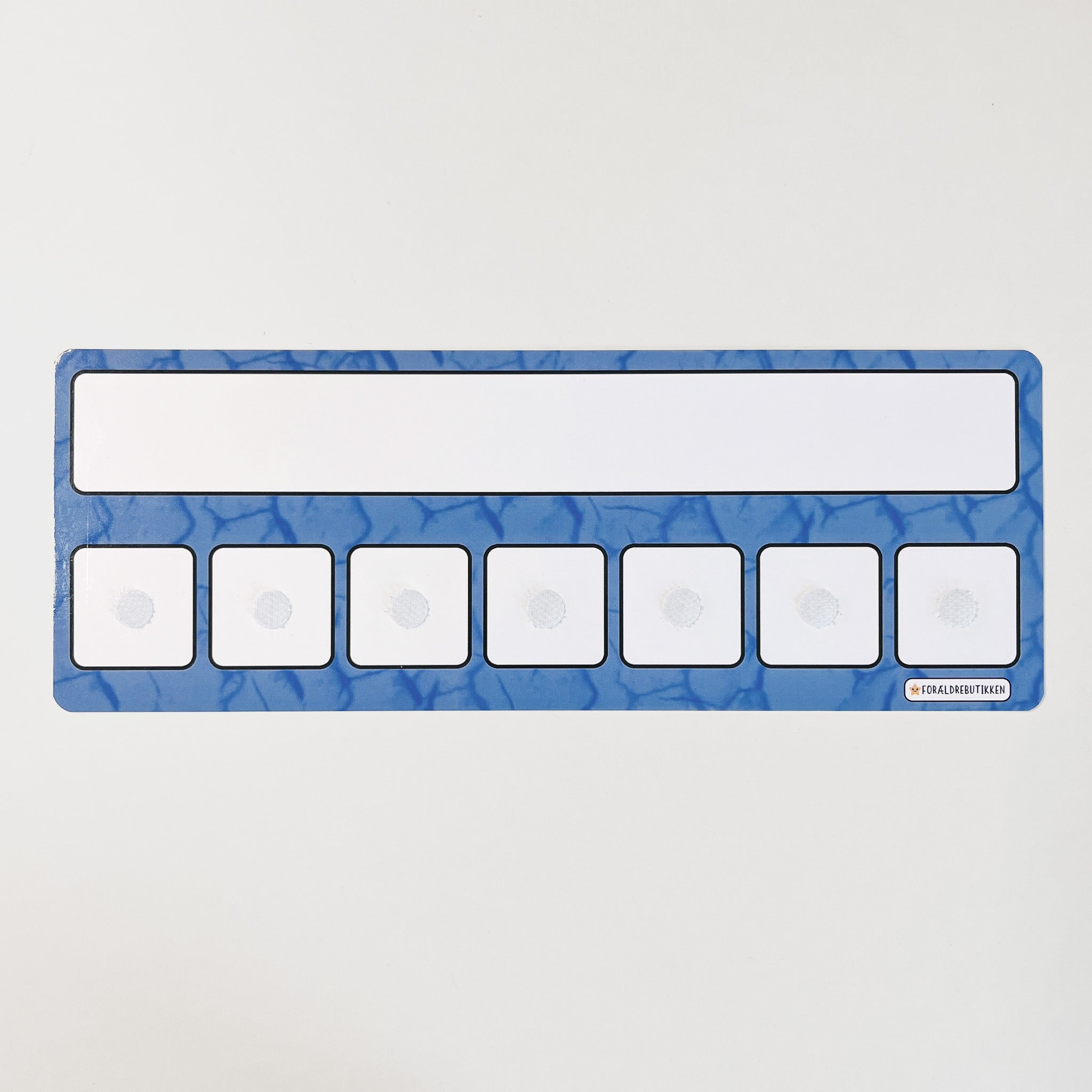 Skemaet har et tomt overskrift felt hvor du selv skal skrive og viske ud igen. Skemaet har velcro felterne som passer til vores løse piktogram brikker.