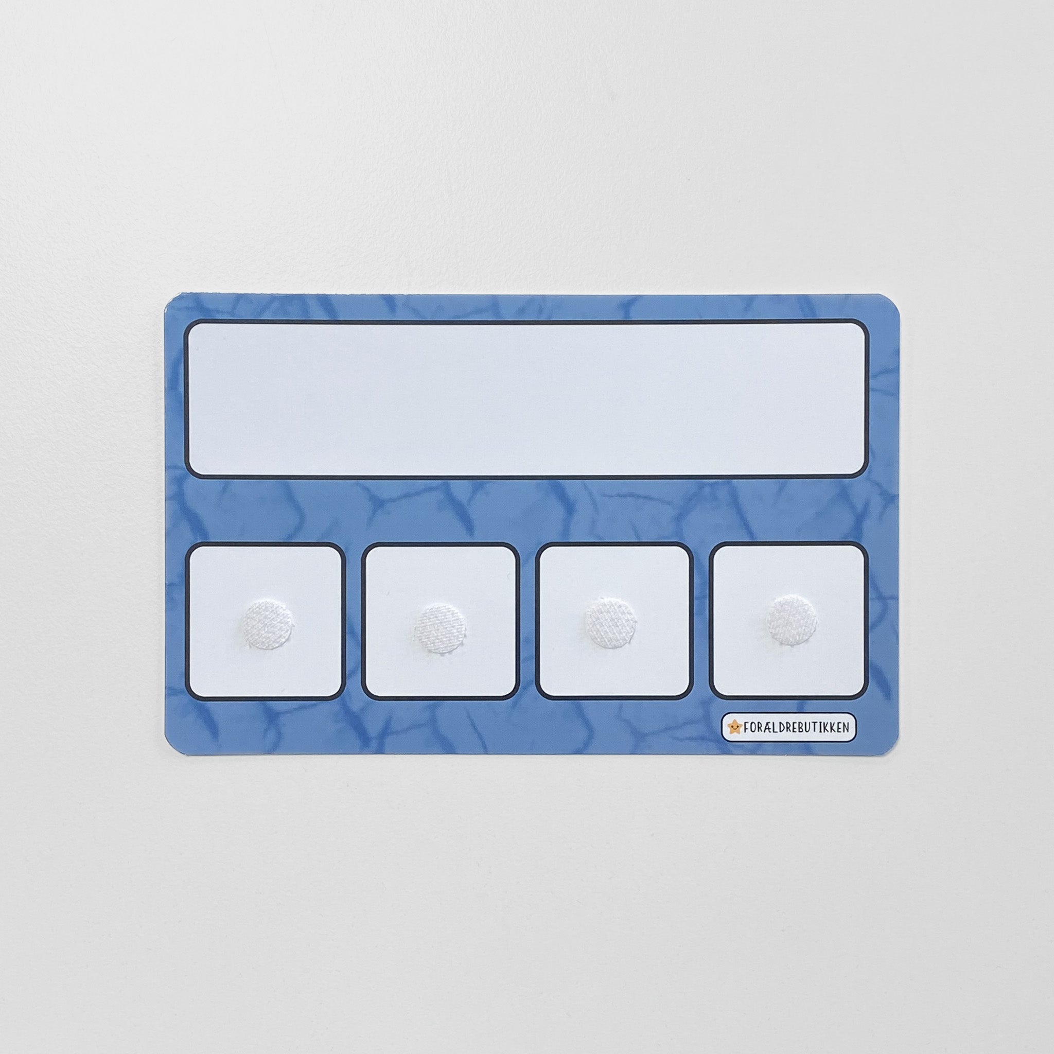 Ja, vi har velcro bagsiden af piktogrammerne og forsiden af tavler, tjeklister, skema, kalender og strimmel. Hvis du ønsker at produkterne skal op og hænge anbefaler vi at tilkøbe en selvklæbende magnetisk plade eller velcro som sættes bag på tavlen/tjeklisten/skemaet/kalenderen mm.